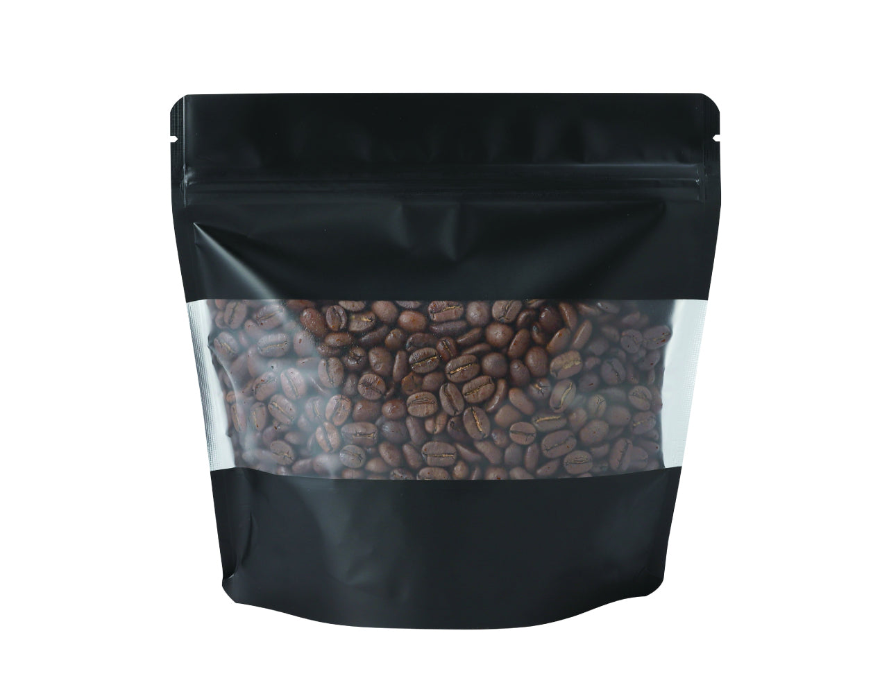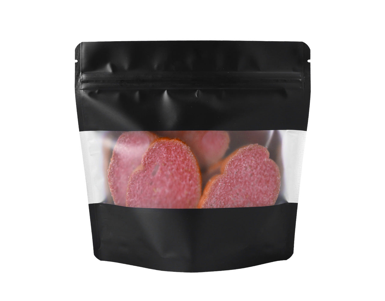 センターにマットフィルムの窓が付いたスタンドチャック袋です。