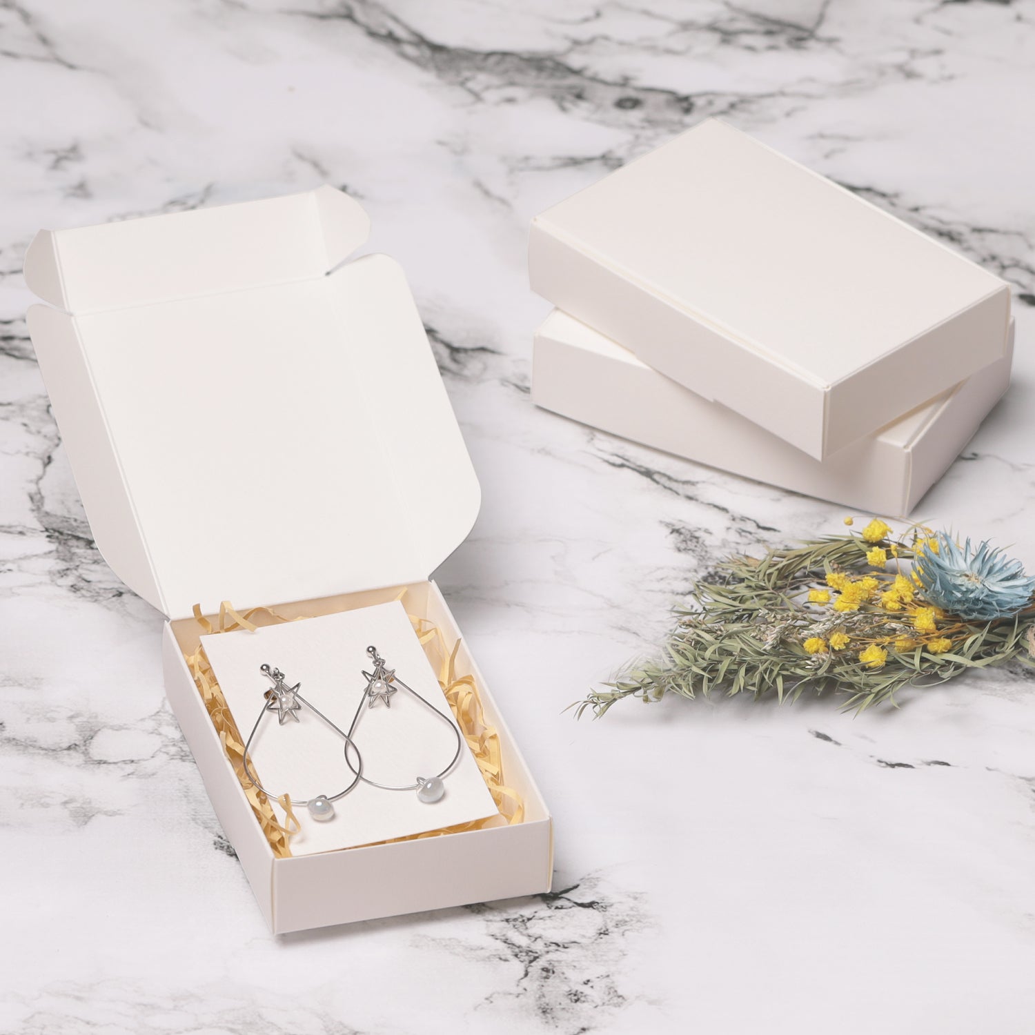 縦長サイズのミニボックスで、焼き菓子&記念品、アクセサリーのセットなど自由に組み合わせられます。