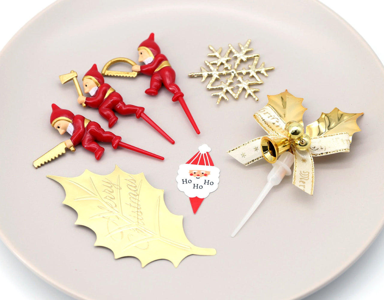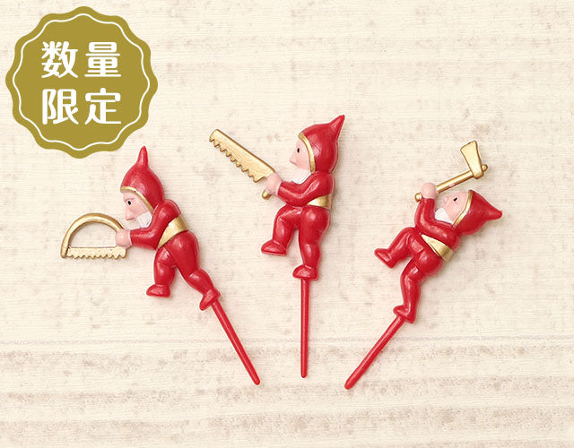 人気商品!赤い服の小人3人がセットになったケーキピックです。